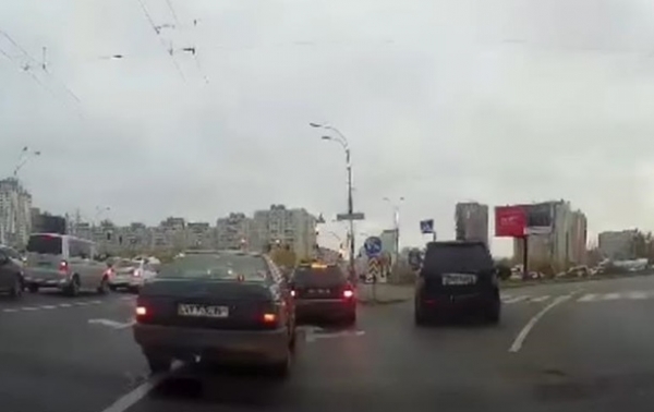 В Киеве водитель Range Rover решил сэкономить время и объехал очередь из машин на светофоре по тротуару. Соответствующее видео, снятое видеорегистротором другого авто, опубликовало в YouTube сообщество citylife.org.ua.
