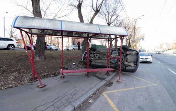 В Киеве на пересечении проспекта Науки и улицы Ракетной в четверг, 7 марта, столкнулись Chevrolet и Audi, в результате чего последнее авто вылетело на тротуар, снесло остановку общественного транспорта и перевернулось. Об этом пишет citylife.org.ua.