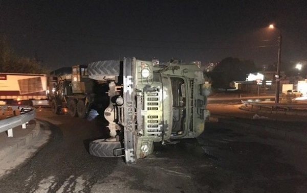 В Киеве в понедельник, 22 октября, перевернулся военный грузовик. Об этом сообщает ТСН.