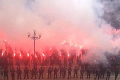Отмечается, что во время шествия активисты применяли пиротехнику и фаера.