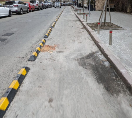На Рейтарській велосмугу додатково захистили антипаркувальними стовпчиками