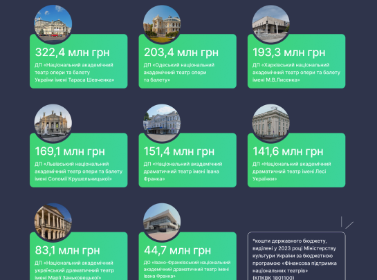 Скільки грошей з держбюджету отримали театри у 2023 році