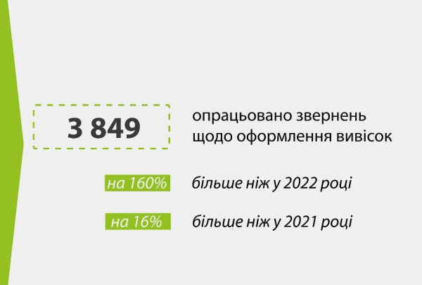 У 2023 році, комунальне підприємство “Київреклама” опрацювало 3849 звернень на оформлення вивісок — це на 160% більше ніж у 2022 році та на 16% більше у порівнянні з 2021 роком.
