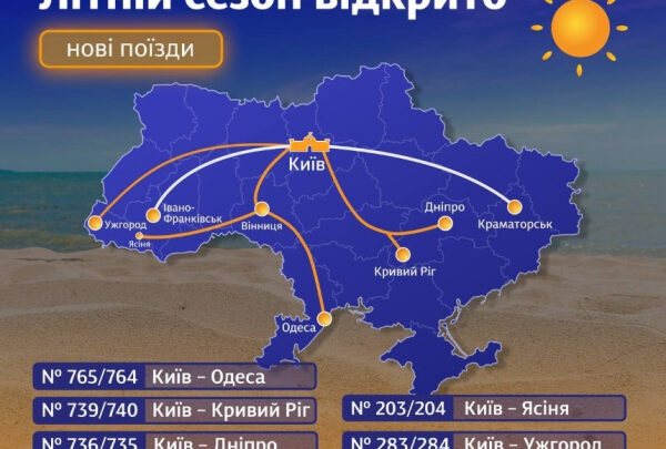 З початком літа традиційно зростає попит на залізничні подорожі — Укрзалізниця доповнює графік руху новими призначеннями.